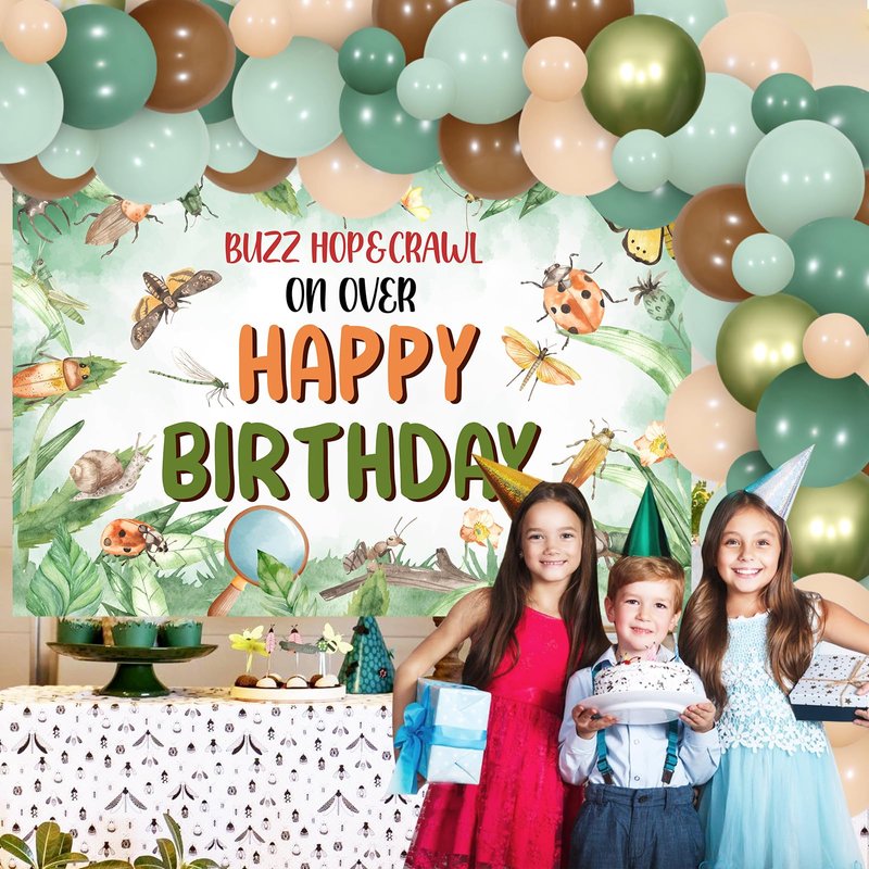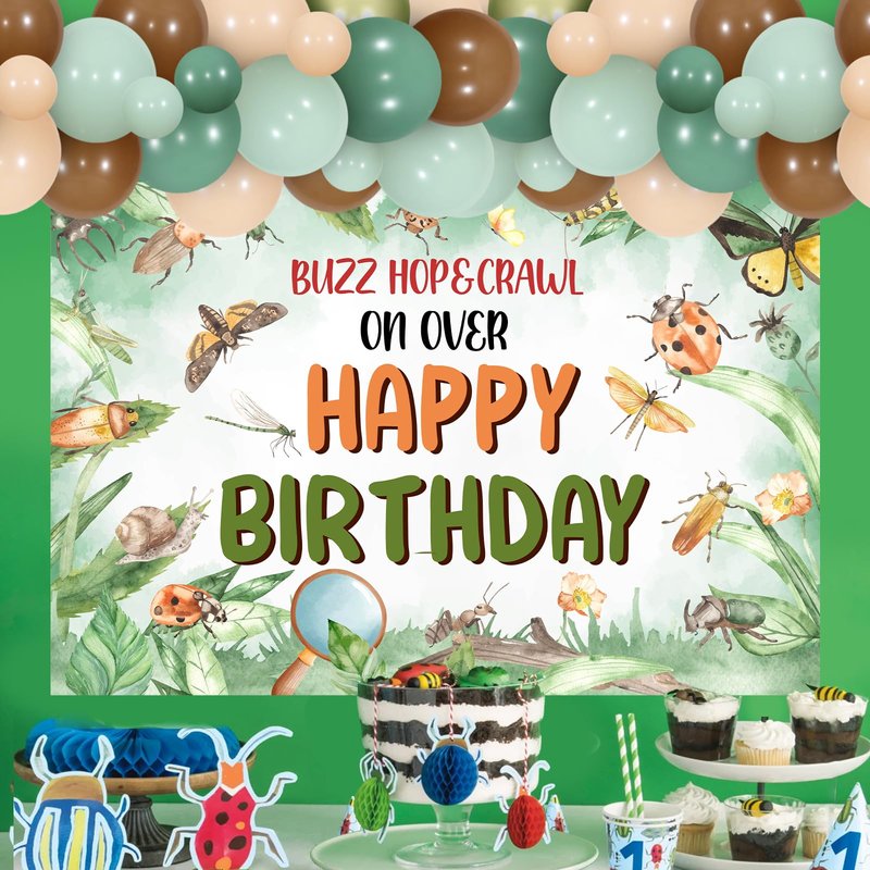 - Package Includes: You will receive 50 x latex balloons(12 inches), 15 x latex balloons(5 inches), 1 x bug birthday happy birthday backdrop, 1 x balloon garland strip, 1 x 100 adhesive dots, which can help you hold an unforgettable bug birthday party