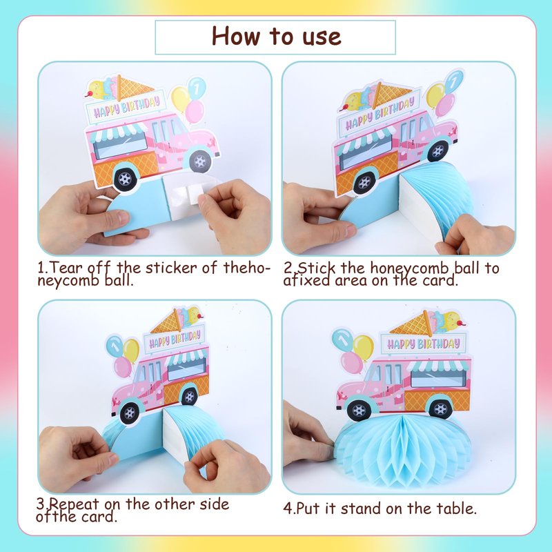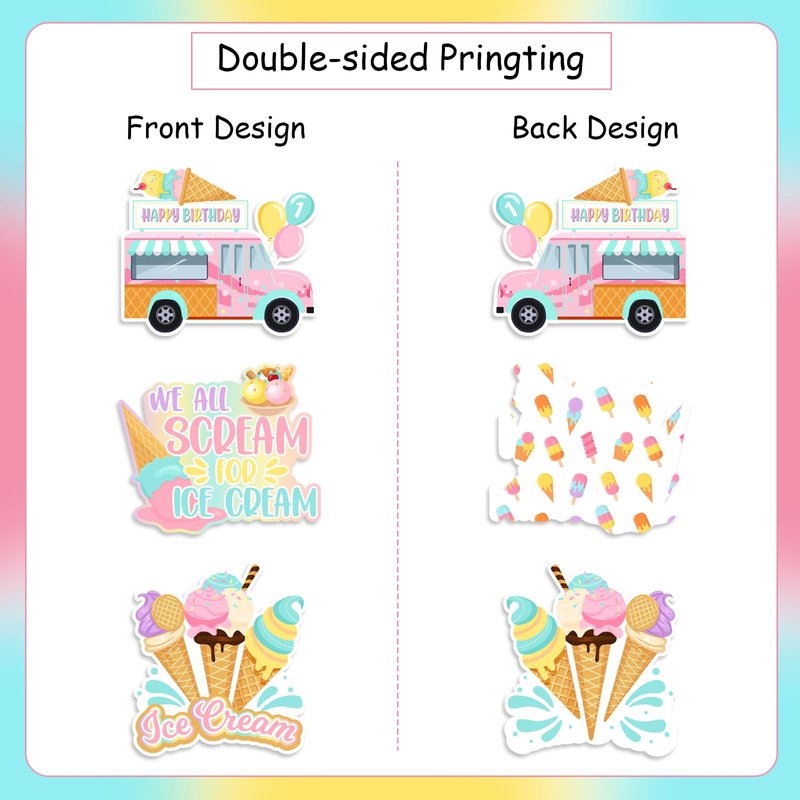 - Unique Design: The ice cream honeycomb centerpiece is specially designed for girl 1st birthday decoration, printed with various ice cream patterns and ice cream truck which is popular with children and adds a strong atmosphere to your girl ice cream theme 1st birthday party