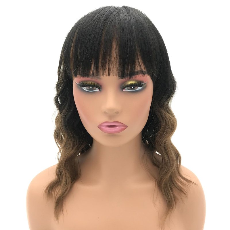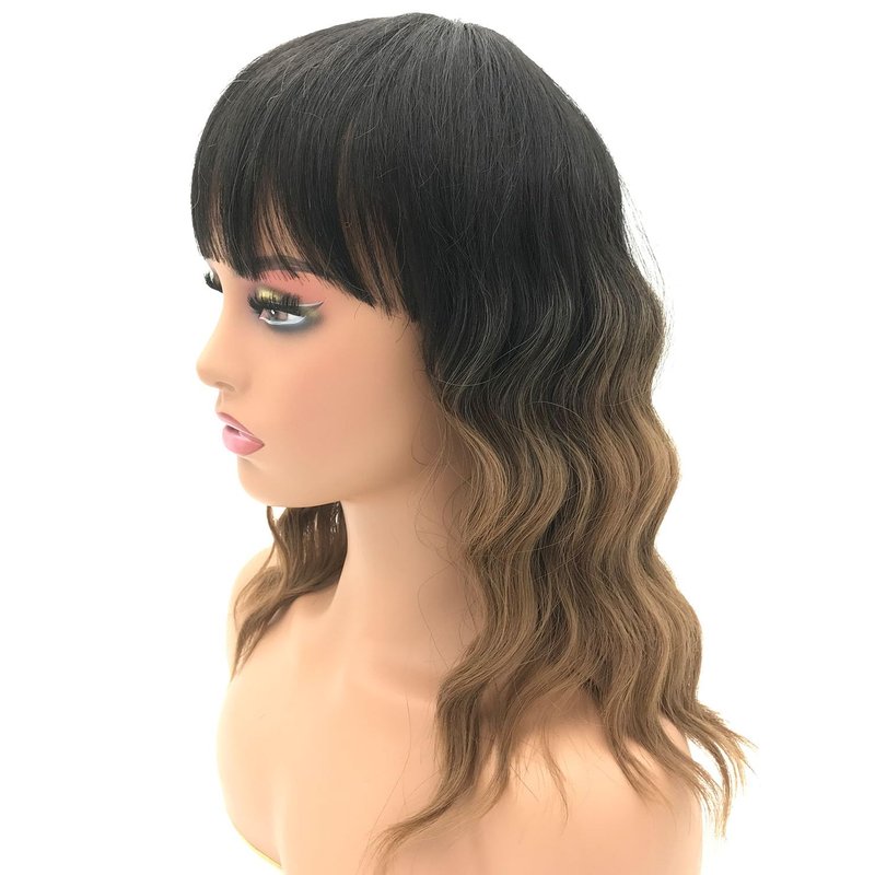 - Premium Material: This black ombre brown bob curly wavy wig is made of synthetic high-temperature resistant fiber hair, which stands heat up to 160°c(320°f). Bangs makes the wig natural looking. Easy to comb and tangle free.