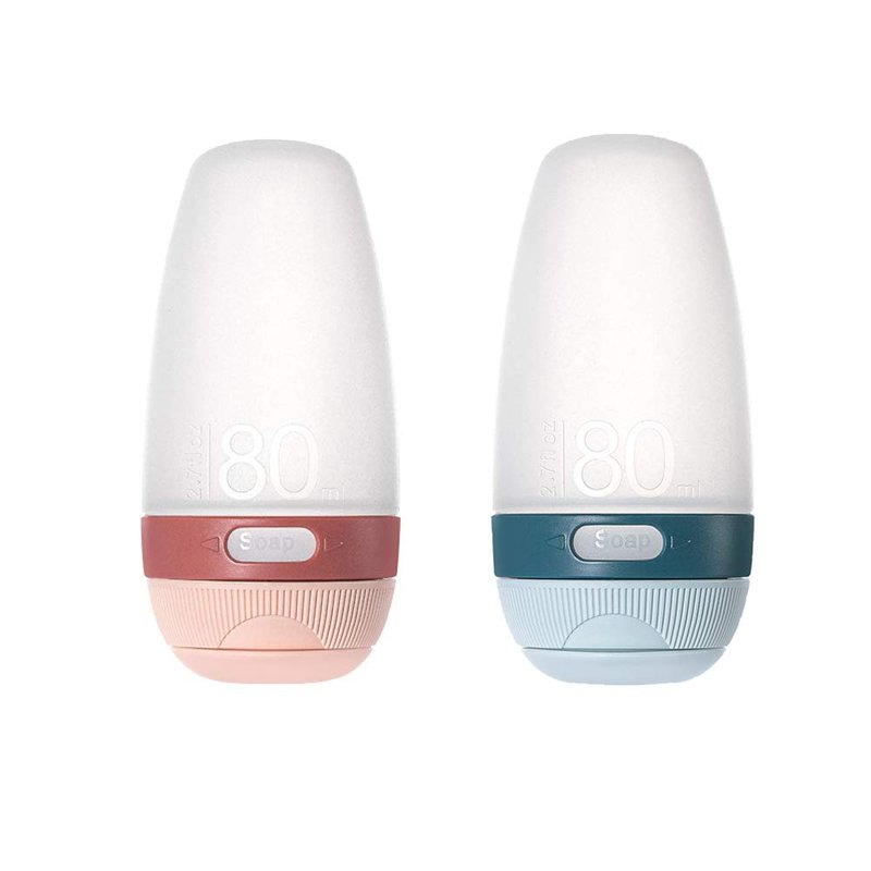 - Portable travel size silicone bottles are perfect for travel, gym and business trip. What are in the package? 2Pcs Silicone Travel Bottles 2.7oz/80ml. (blue and pink)