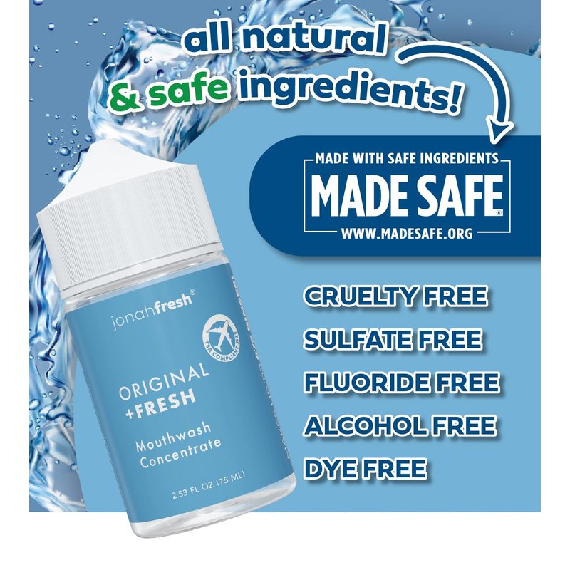 Jonah Fresh All Natural Mouthwash Concentrate | SLS Free | PEG Free | Made Safe Certified (Original Concentrate, 1 Pack (Total 2.53 fl oz) Makes 224 Fl Oz)
