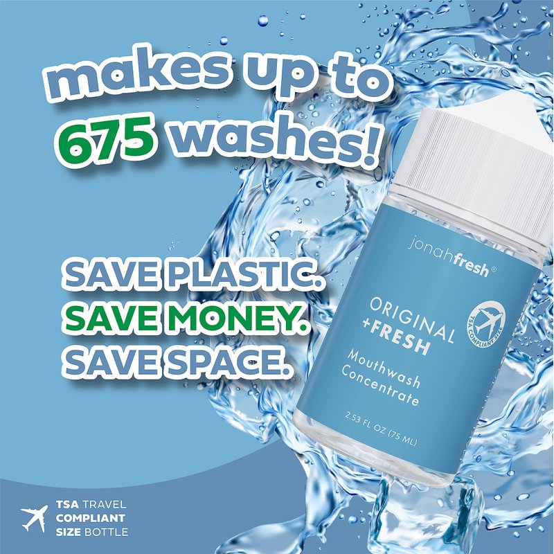 Jonahfresh mouthwash features a concentrated formula designed to kills germs and neutralize odor causing bacteria without stripping or irritating your teeth and gums. Just add 3-5 drops to cap and fill with water. Leaves mouth feeling clean and fresh. Great for travel size mouthwash and small spaces. Jonahfresh mouthwash concentrate is a carefully developed and formulated solution that dilutes with water to make a great tasting mouthwash for everyday use. Just a quick rinse attacks bad breath bacteria and leaves a clean feeling behind. This mouthwash concentrate is made using natural ingredients so that you have to worry about harmful chemicals while you rinse. Made with a blend of essential oils to kill germs and bad breath bacteria found in your mouth.
