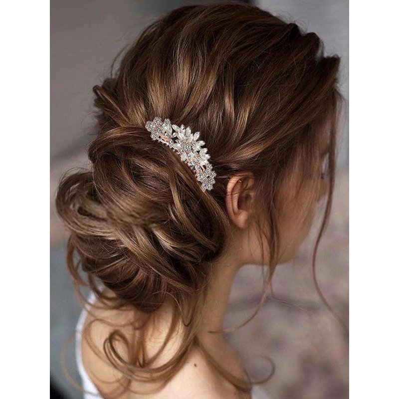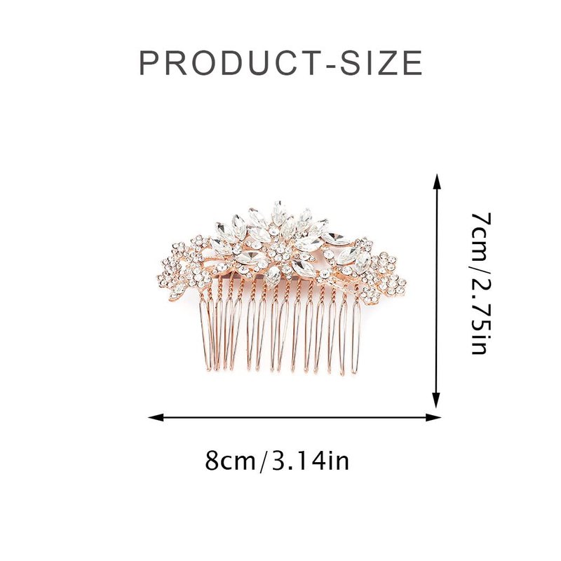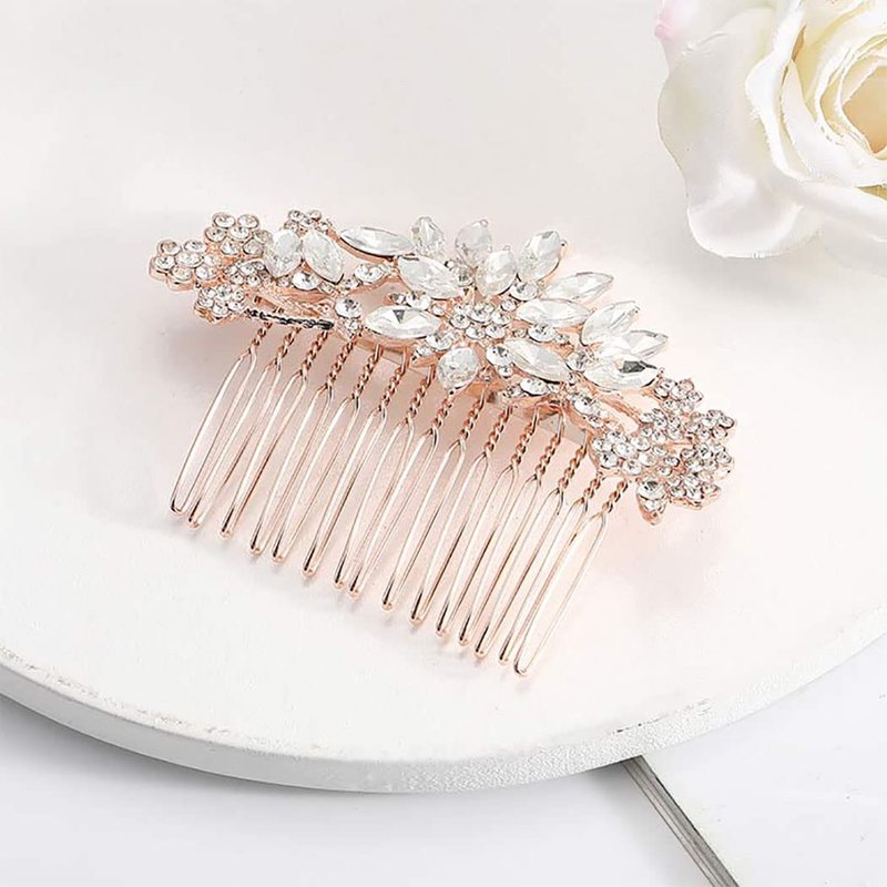 - Crystal hair piece color is rose goldThe design is simple and elegant, and it is comfortable to wear. You can adjust the wearing of the hair comb according to your needs to achieve a beautiful appearance.