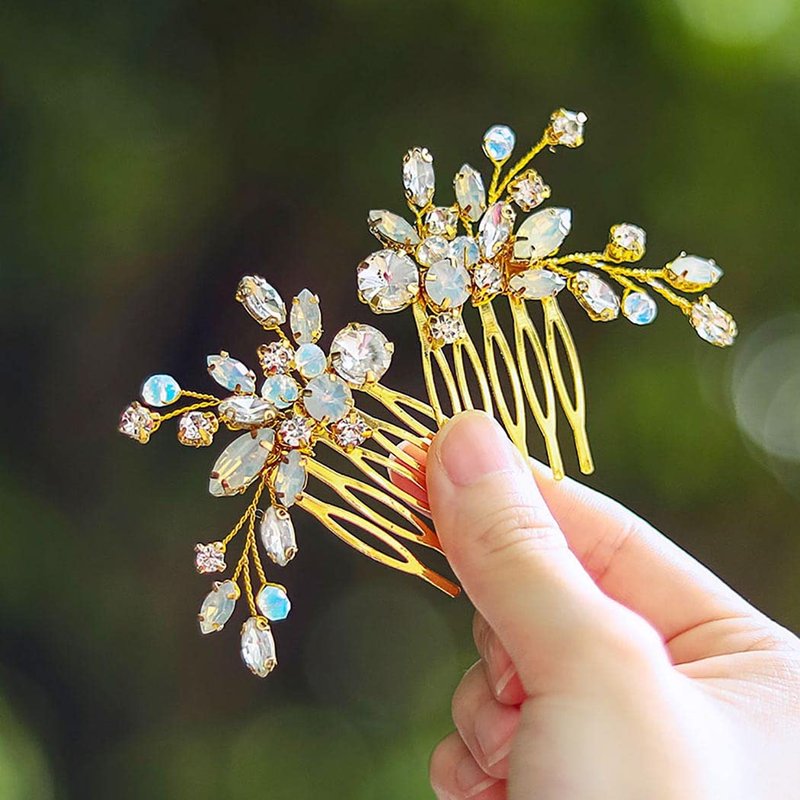 JONKY Crystal Bridal Hair Comb Gold Rhinestone Wedding Hair Pieces Bride Hair Accessories for Women(Pack of 2)