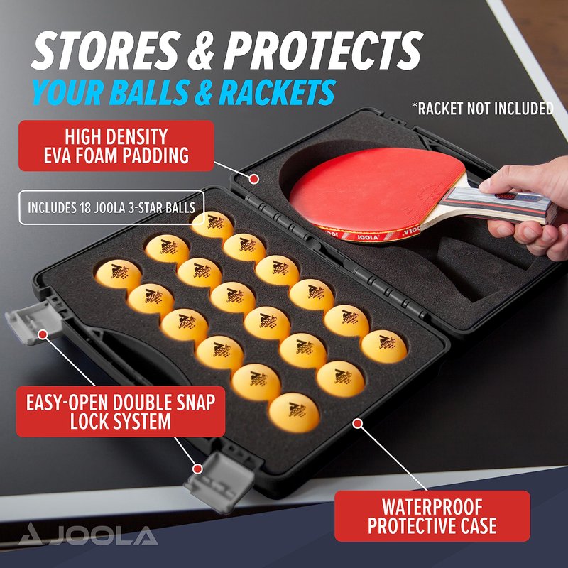 - INDOOR AND OUTDOOR PLAY: This storage case of ping-pong balls will work indoors or outdoors. The quality ensures the entire kit of paddles and balls can be used by kids and adults. Great gift for someone who already owns a JOOLA ping pong table!