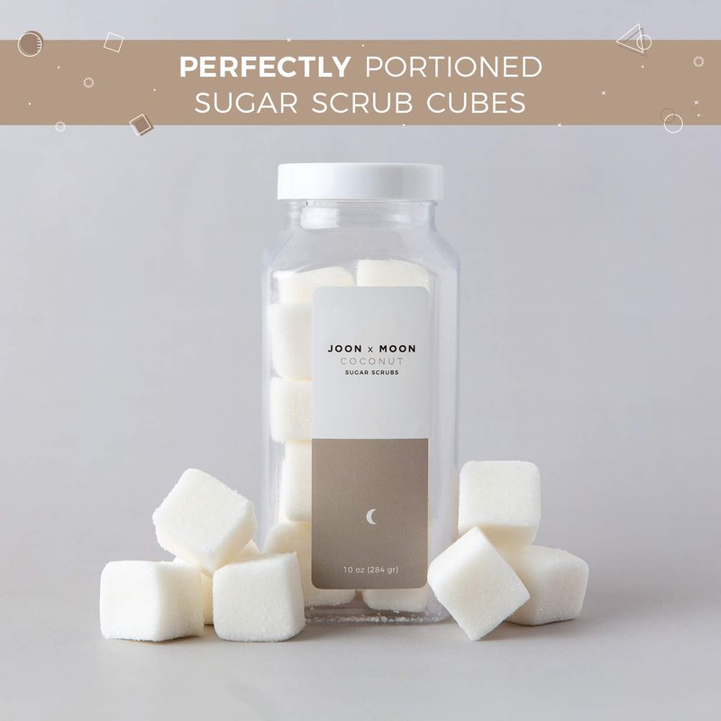 JOON X MOON Sugar Scrub (Coconut, 1 Pack), Exfoliating Body Scrub, Moisturizing Aloe and Shea Butter to Soften and Nourish Skin, Beauty and Self Care Essential, Single Use Scrub Cubes, 10 oz