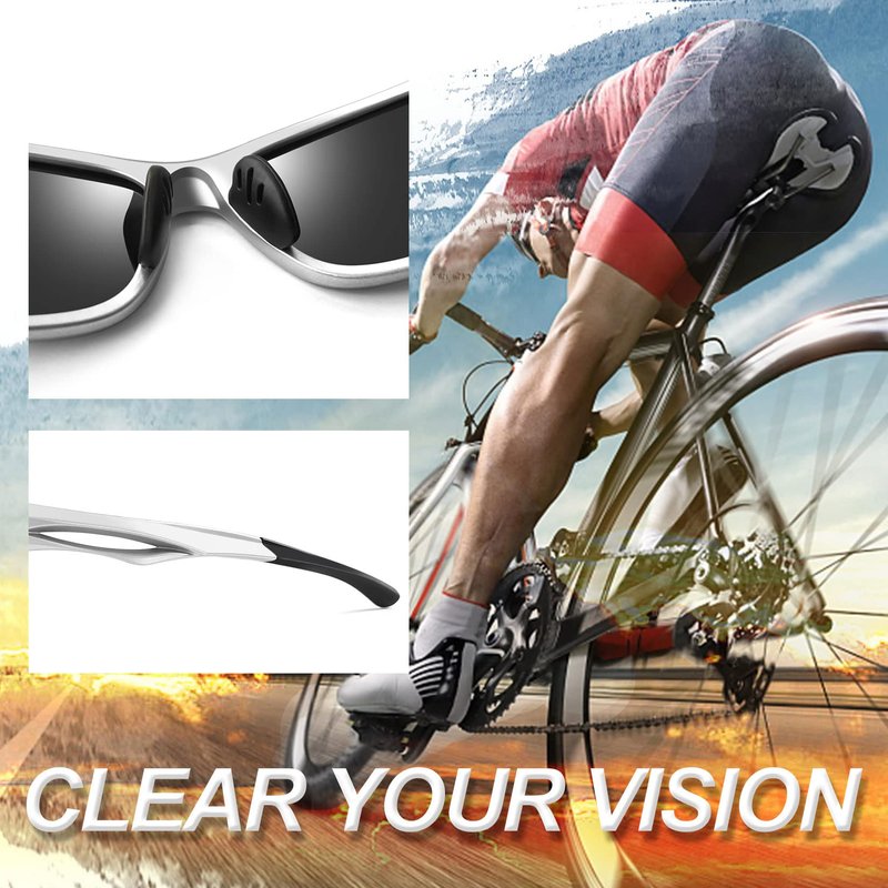- PRACTICAL WRAP AROUND STYLE: Joopin sport glasses are wrap around style for plenty of eye protection and provide a secure fit during exercise. The frames of athlete sunglasses boast a comfortable yet fitted design to keep them from bouncing while you are in action. Safety sunglasses with sharp angles and bold lines add an edge to softer facial features. Futuristic silver frame sunglasses spice up your cyberpunk look