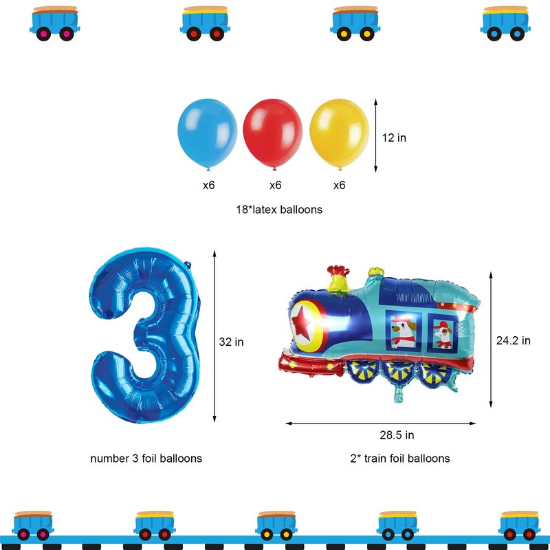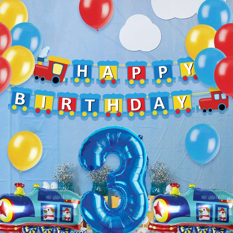 JOPARY Train 3rd Birthday Decorations Boys Train, 3 Years Old Birthday Party Supplies With Number 3 Foil Balloons Train Birthday Banner,Latex Balloons For Kids Train Birthday Party Decoration