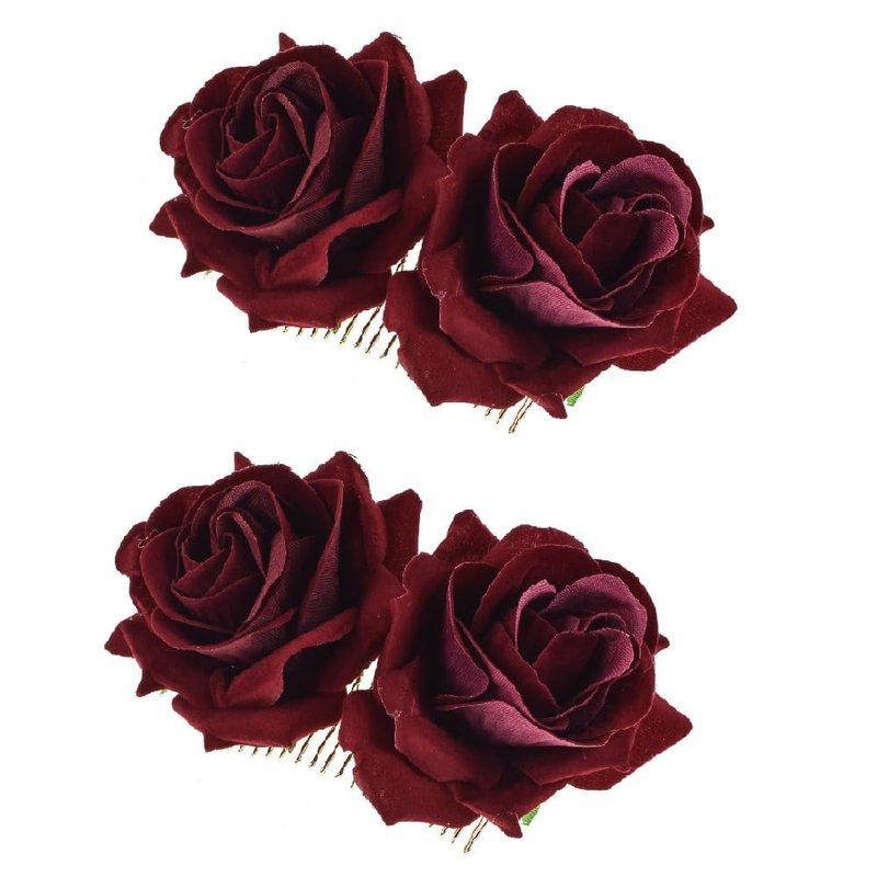 JORCEDI 2 Pcs Women Rose Flower Hair Comb Bridal Jewelry Headpiece Hair Pin Clip Decor For Wedding Bridal Holiday Party Headpieces (Wine Red)