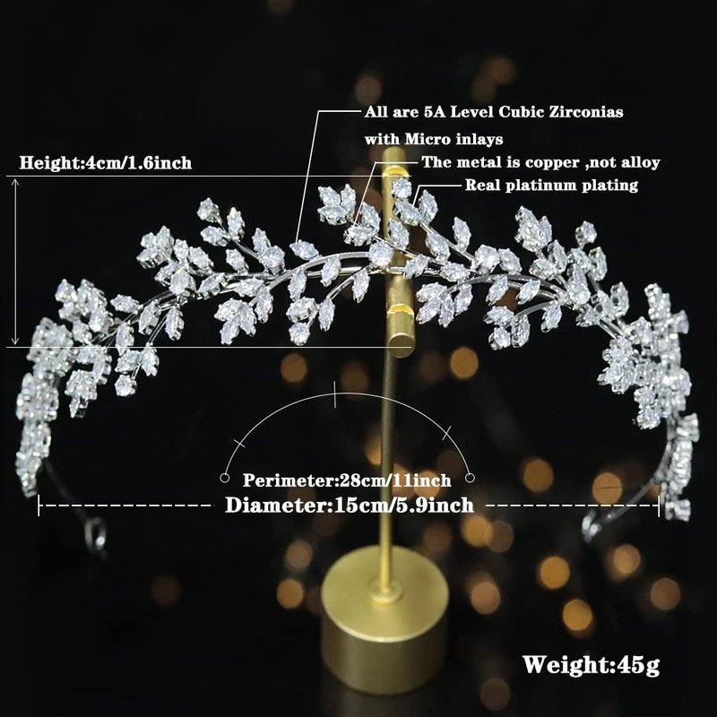 - ♛ Material: High quality tiara, made of Cubic zirconia; The metal is soft copper plated with real platinum, not easy to fade, better than the alloy
