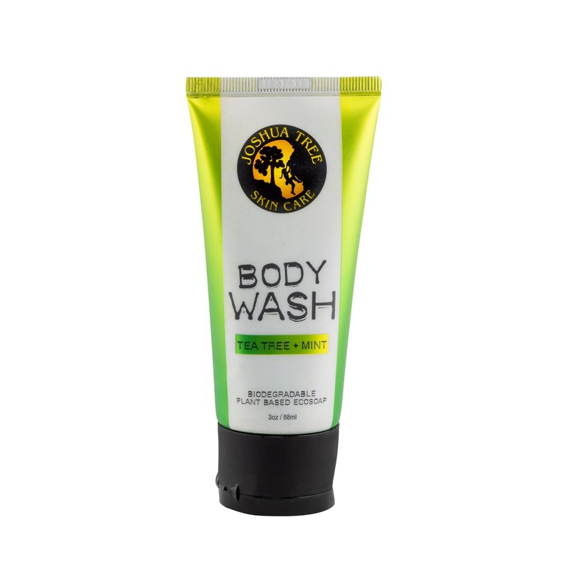 Joshua Tree 3 oz. Body Wash, Shampoo - Biodegradable Plant Based Eco Soap with Organic Ingredients (Tea Tree + Mint)