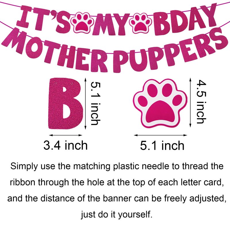 - Dog Birthday Sign Banner: Mother puppers themed dog birthday sign banner is easy to assemble. The size of each letter banner is 5" x 3.4". The size of each paw sign is 4.5" x 5.1". Hanging it on the background wall can bring atmosphere, making it suitable for taking photos and bringing joy to you and your lovely dog.