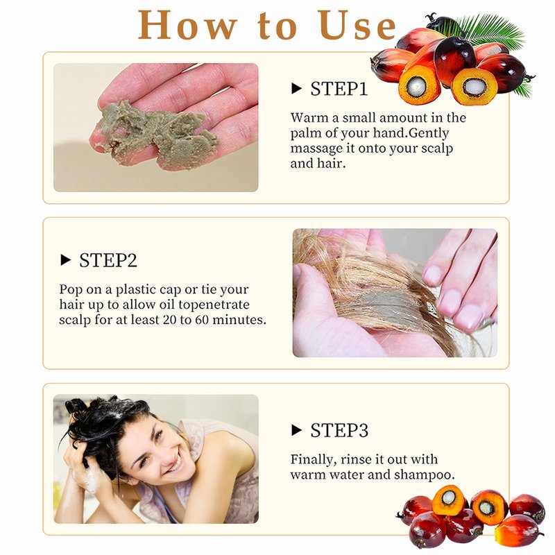 - Easy to Use Batana Oil - First, warm the Batana oil in your hands and massage it onto the scalp and hair for 3-5 minutes. Then, leave the oil on for 20 to 60 minutes. Finally, rinse with warm water and follow with your regular shampoo and conditioner!