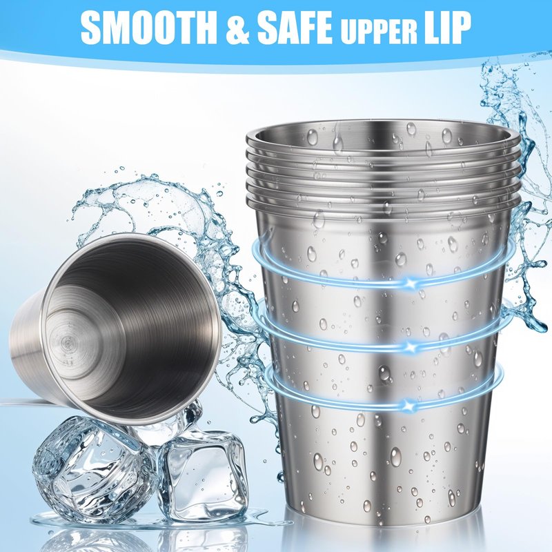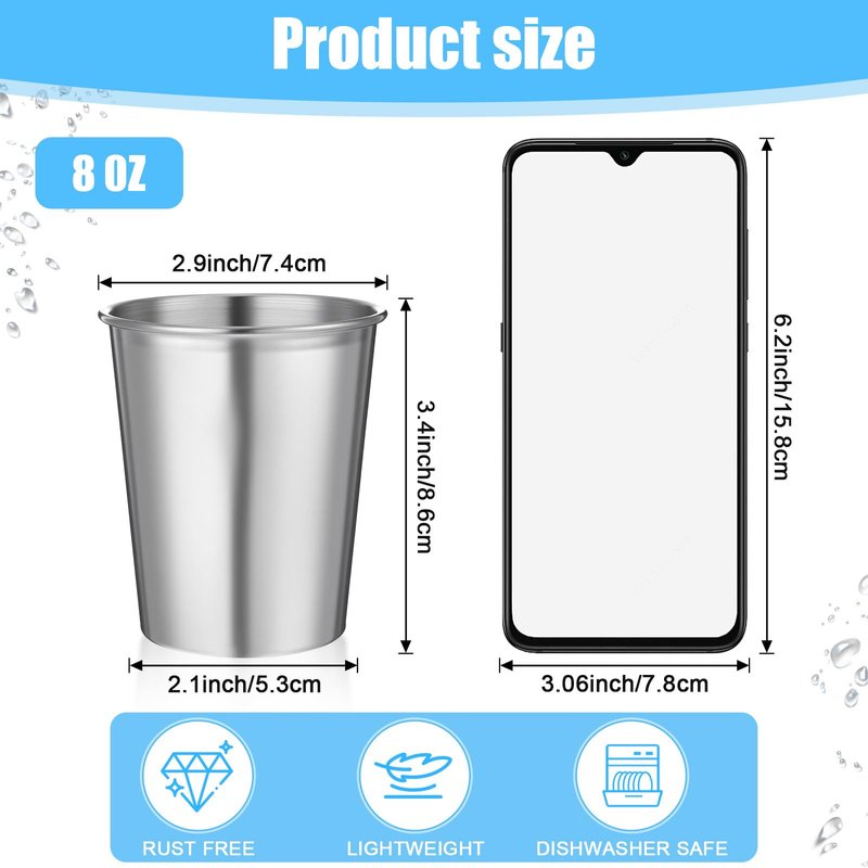 JOUTYFOR 15 Pieces 8 oz Stainless Steel Pint Cups Unbreakable Water Tumblers Stackable Metal Mint Julep Cups Reusable Metal Glasses for Kids Travel Outdoor Camping Activities Home