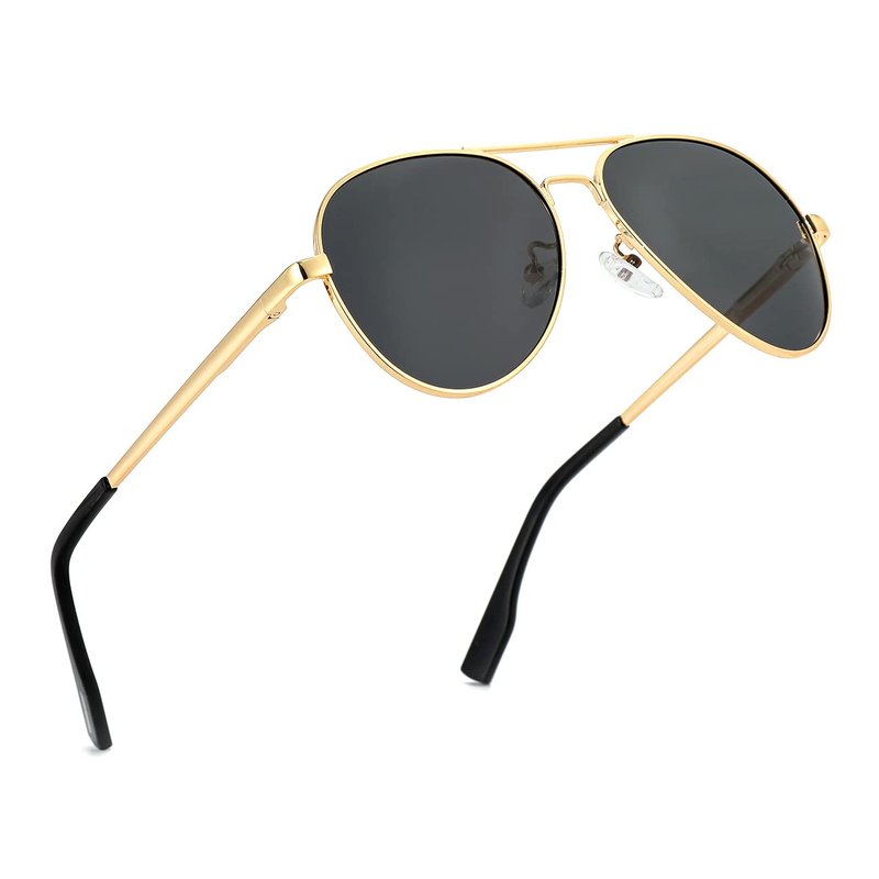 JOVAKIT Kids Small Polarized Aviator Sunglasses for Girls and Boys Age 4-16 (Gold/Grey)