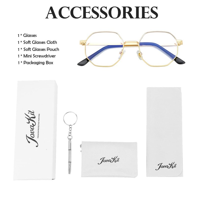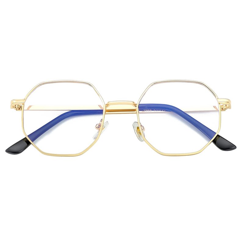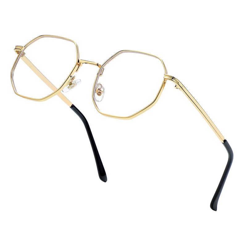 JOVAKIT Polygon Blue Light Blocking Glasses for Women Men Vintage Octagon Square Non-prescription Metal Eyeglasses (Gold)