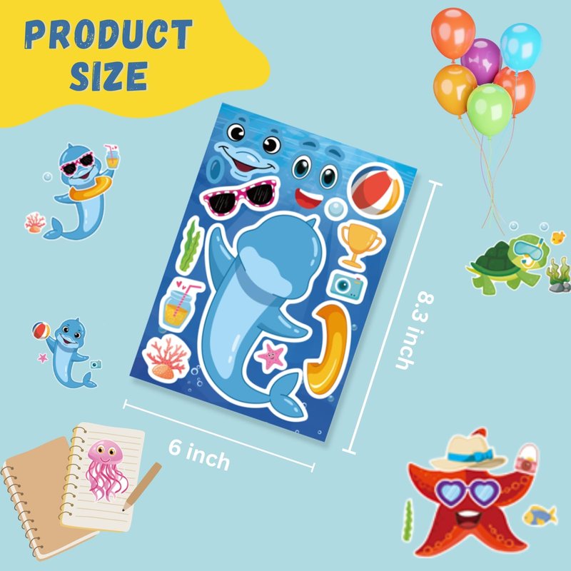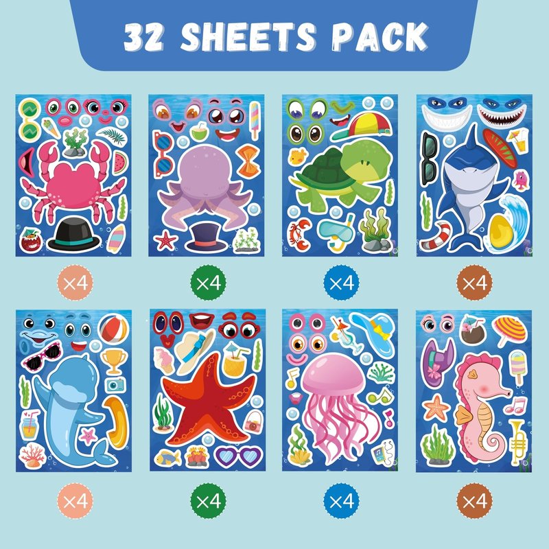 Jovial & Joyful 32 Sheets Sea Animals Make Your Own Stickers, Make a Face Sticker Sheets for Kids, Octonauts Birthday Party Supplies, Under the Sea Party Favors, Return Gifts for Birthday Party