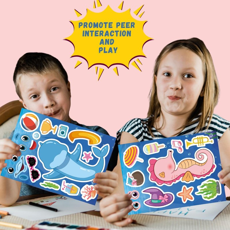 Embark on a crafting voyage beneath the waves with our Make-a-Face Ocean Animal Sticker Sheets! These aren't your ordinary ocean stickers – they're your passport to an under-the-sea odyssey, bursting with vibrant sea animals ready to be brought to life by your child's imagination. Perfect for every under the sea party favor, each of our 32 sheets (6*8.3 inches) is a deep dive into the colorful world of sea creatures, waiting to adorn mermaid party favors or ocean themed party favors. Crafted from thicker, tear-resistant material, these waterproof wonders can be repositioned to tell a new tale, making them the star of ocean party favors and sea creature party favors. Watch as every little guest at your kid birthday party becomes a master of the oceanic arts, mixing, matching, and creating their unique sea animal stickers. Your little ones will adore adorning their mermaid stickers with quirky faces, turning mermaid party favors into a sea of giggles and memories. And with ocean animal stickers designed for durability, they're as steadfast as a captain's resolve. From the sunny shores to the mysterious fathoms below, these make a face sticker sheets will make a splash at your next birthday party or sea theme event. The ocean foam stickers are an ideal birthday favor, ensuring ocean animal party favors are the catch of the day. Don't let your under the sea craft adventure sail away – anchor these make a face stickers for kids in your cart today and turn the tide on boredom. Sea for kids has never been this exciting, and with these stickers, every kid party will be awash with the magic of the deep blue!