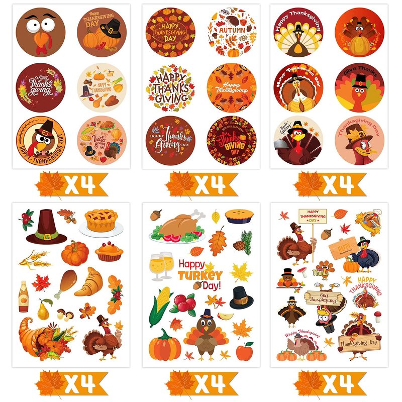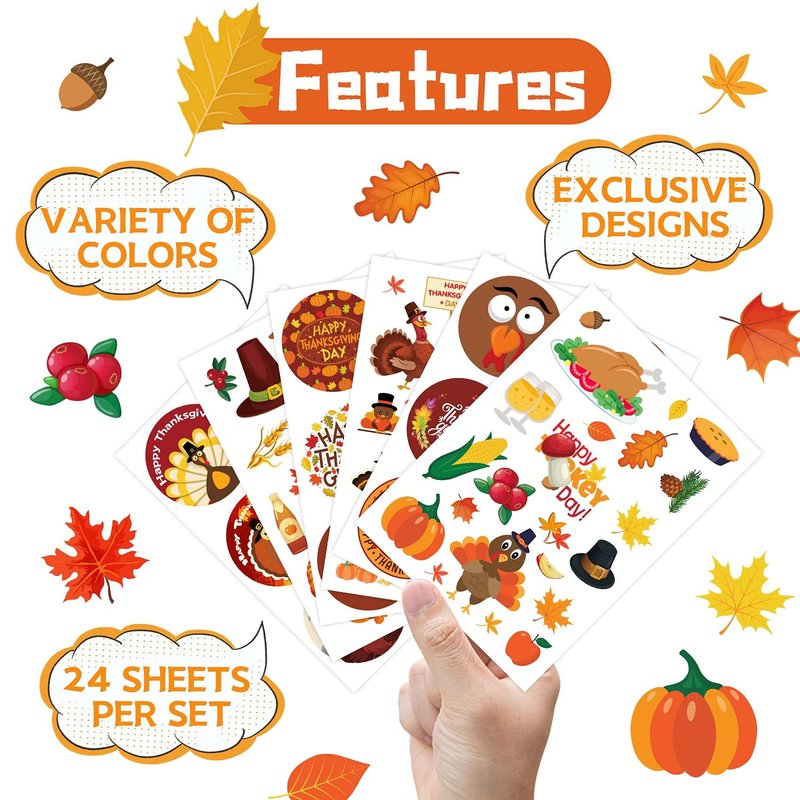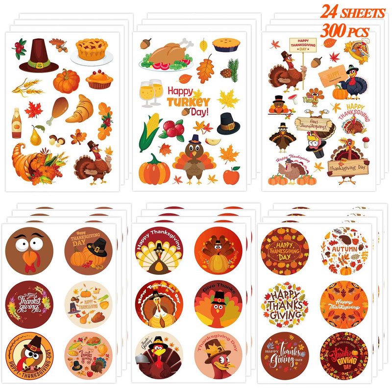- PACKAGE INCLUDES: 24 sheets of thanksgiving stickers, Turkey sticker sheets 7" X 5", 300 stickers in total, 6 different sheets