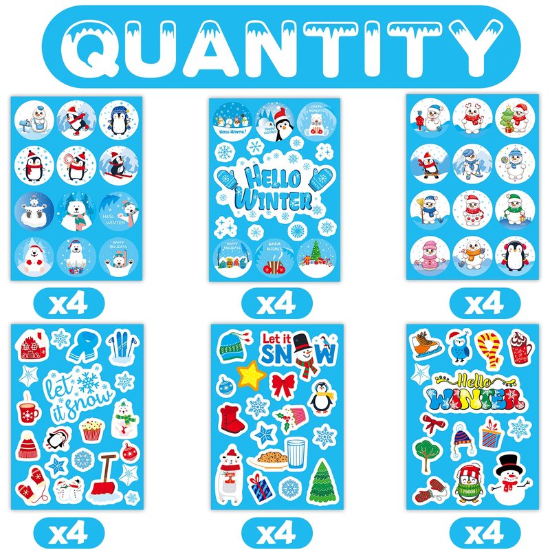 - SUPER VALUE: This set of winter stickers comes with 24 sheets of 6 different styles, More than 80 different winter patterns let you choose from, including round and irregular stickers, Just mix and match according to your preference