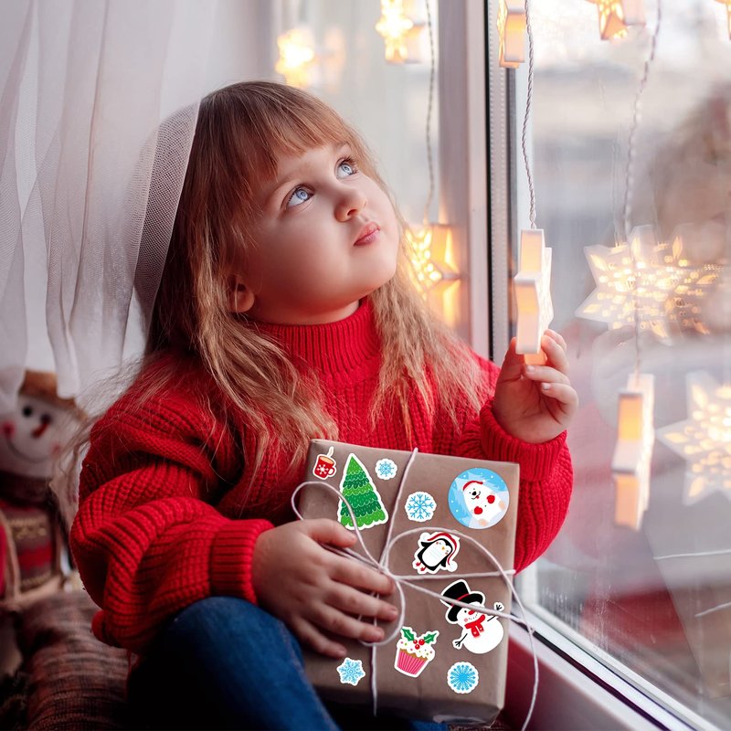 Christmas sticker sheets are made of paper with film covered, safe, durable and bright. You can use irregular Xmas stickers like snowflakes, winter hats and gloves stickers to decorate crafts and cards. And round stickers with snowman, penguin and polar bears can be used for envelopes.
