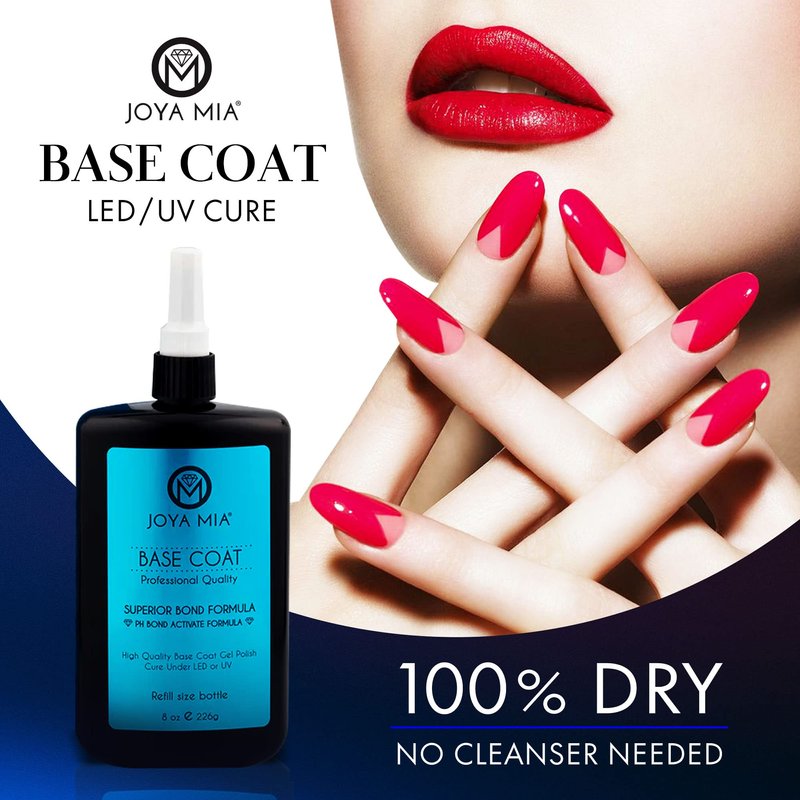 - Achieve A Salon-Quality Finish - Give your gel manicure a sleek, professional-looking finish with JOYA MIA’s gel top and base coat! Our gel base coat is easy to use and needs a curing time of only about 30 seconds.