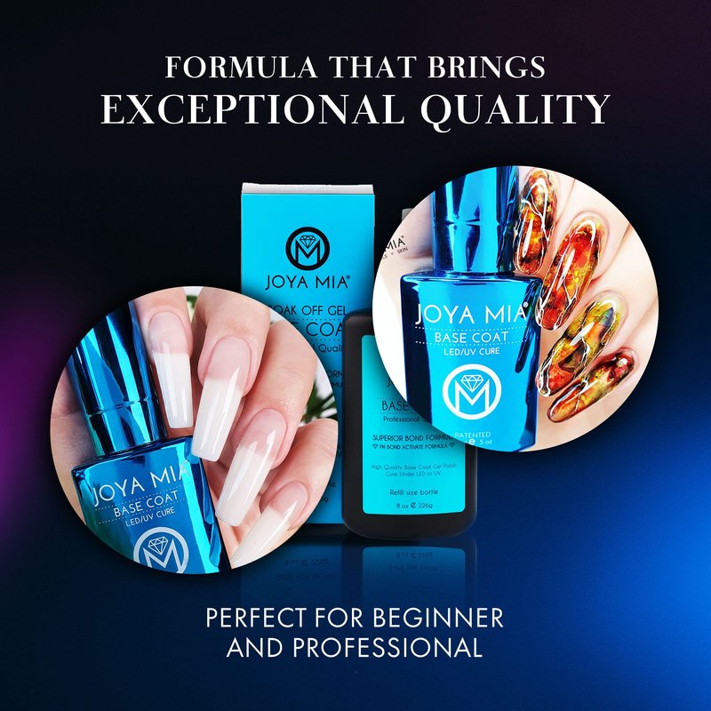 - Ensures Longer-Lasting Manicure - JOYA MIA’s nail polish base coat reinforces the adhesive bond between the nail plate and your nail gel polish. This base gel coat secures your manicure firmly to your nails, keeping it from chipping or peeling off.