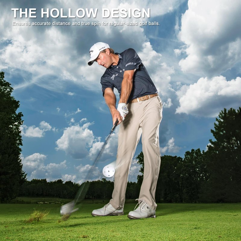 - 【Symmetrical hollow design】 These practice golf balls, are about 42mm in diameter, with each weight is 4.2g, round ball surface has a symmetrical 26-round hole design, which can ensure the golf practice balls are at high speed running constant speed, and the distance within the specified range. Friendly to golfers with limited space and time, perfect for kids and beginner training golf.