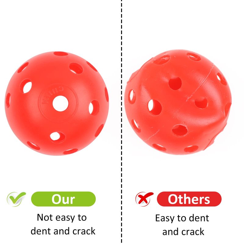 - HOLLOW DESIGN: These Practice Golf Balls, approximately 42mm in diameter, have symmetrical 26-round holes designed on the surface to secure a constant spin and accurate distance of regular-size golf balls.