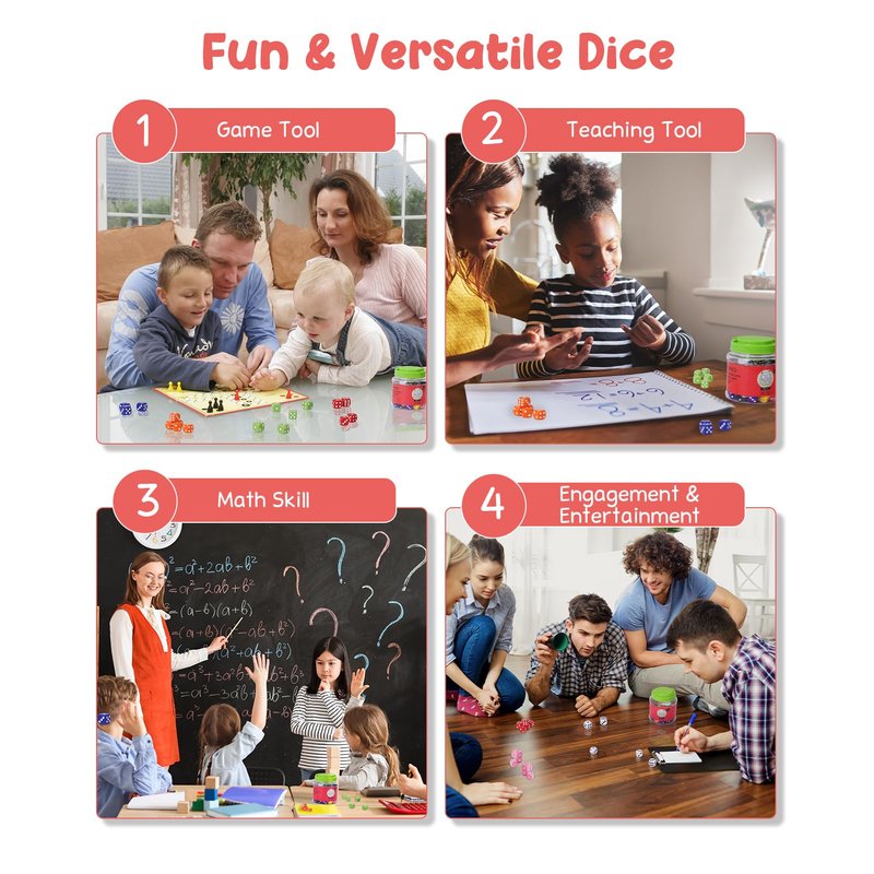 - Classroom Dice games : Perfect for playing math dice games and teaching mental math skills to kids in the classrooom. It's also a great stack toys for kids to build their own shapes.