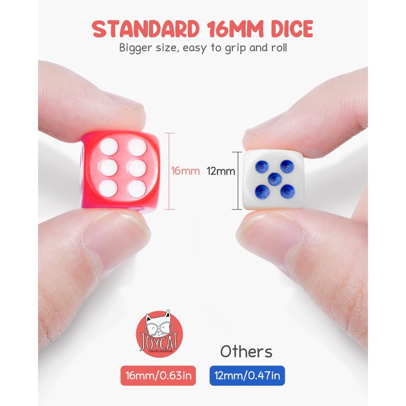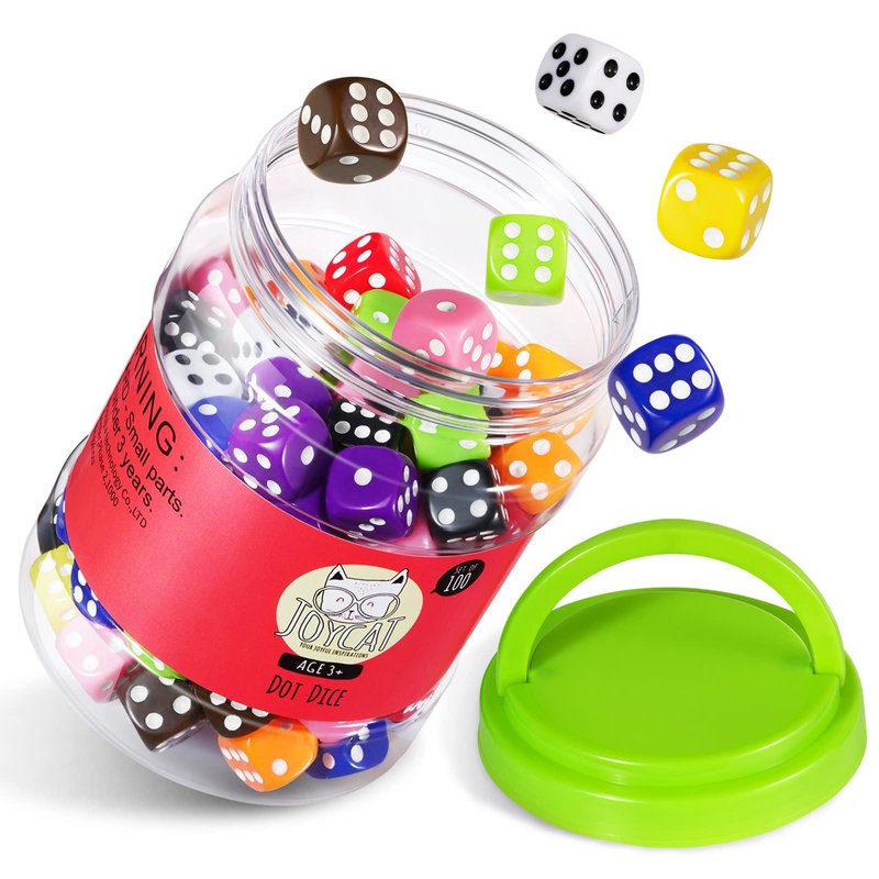 JoyCat 16mm 6 Sided Dice Set Standard Game Dice Kids for Board Games Dice Games Math Dice for Classroom with Storage Bucket (100, Opaque)