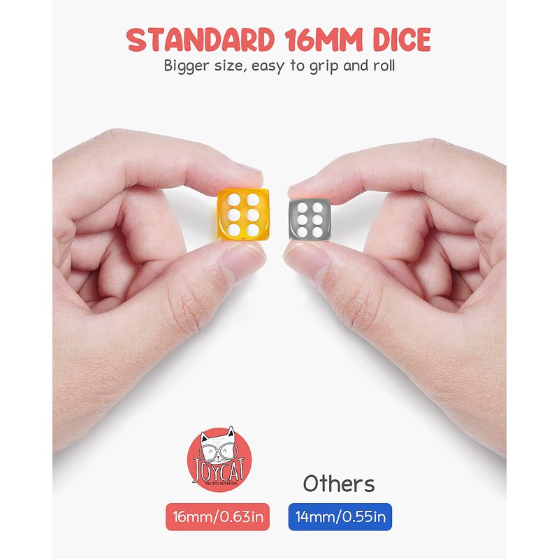 JoyCat 16mm 6 Sided Dice Set Standard Game Dice Kids for Board Games Dice Games Math Dice for Classroom with Storage Bucket (100, Translucent)