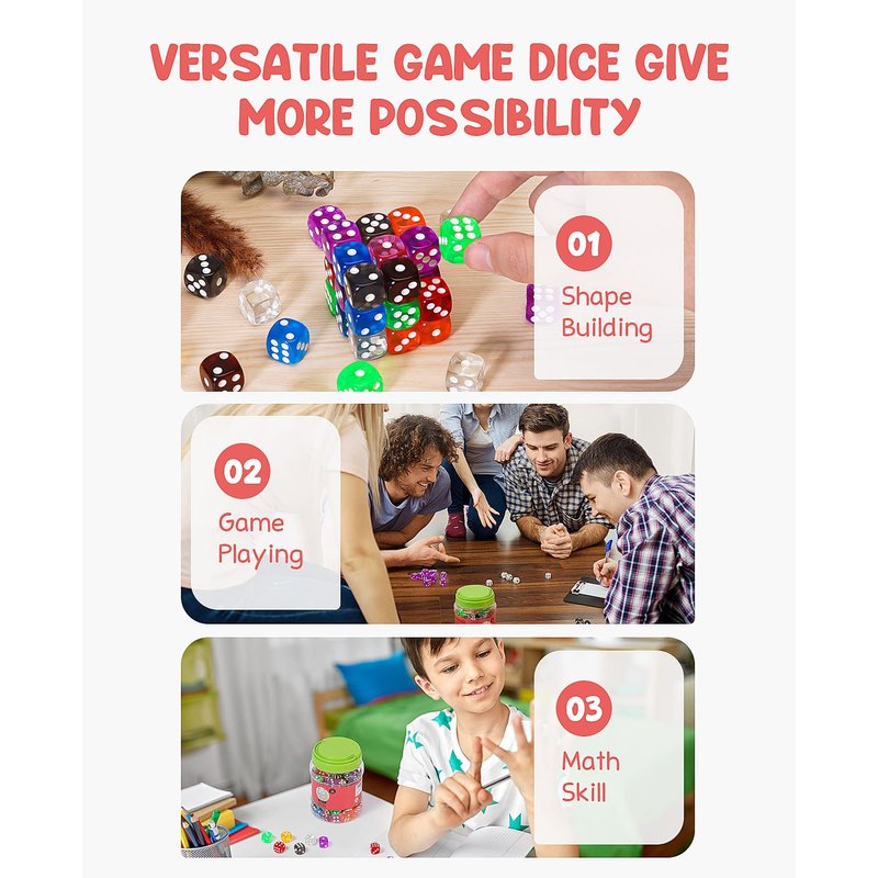 - Classroom Dice games : Perfect for playing math dice games and teaching mental math skills to kids in the classrooom. It's also a great stack toys for kids to build their own shapes.