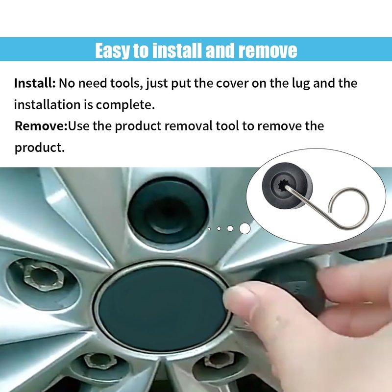 - 【Easy to Install】:It only takes a few seconds to press the lug bolt cap onto the bolt, ensuring that the cap fits tightly on the nut and won't fall off or loosen. The removal tool included in the package makes it easy for you to replace the tire bolt cap.