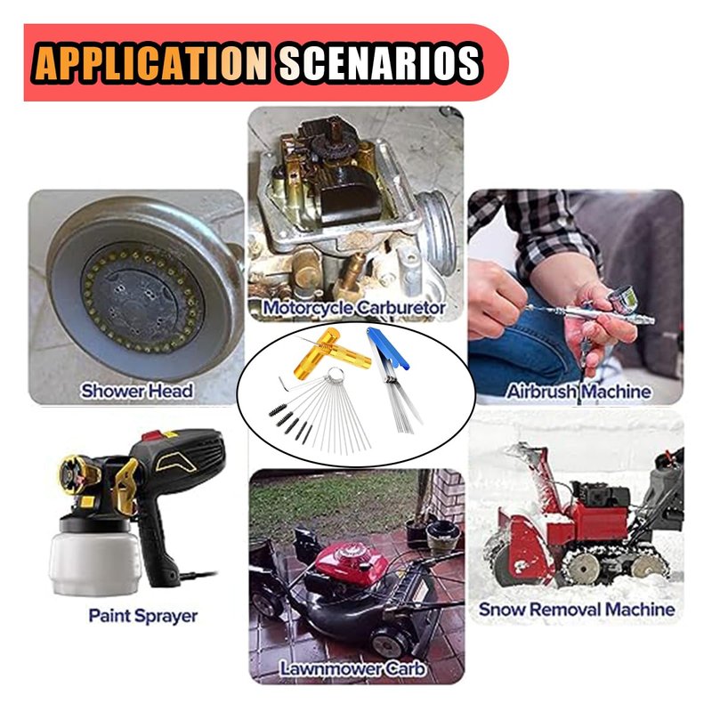- 【Application】:Brushes and Rods can be used to clean small holes in nozzles, air tools, camping stoves, and more. It comes in handy for everything from weed whackers to torch nozzles and motorcycles.