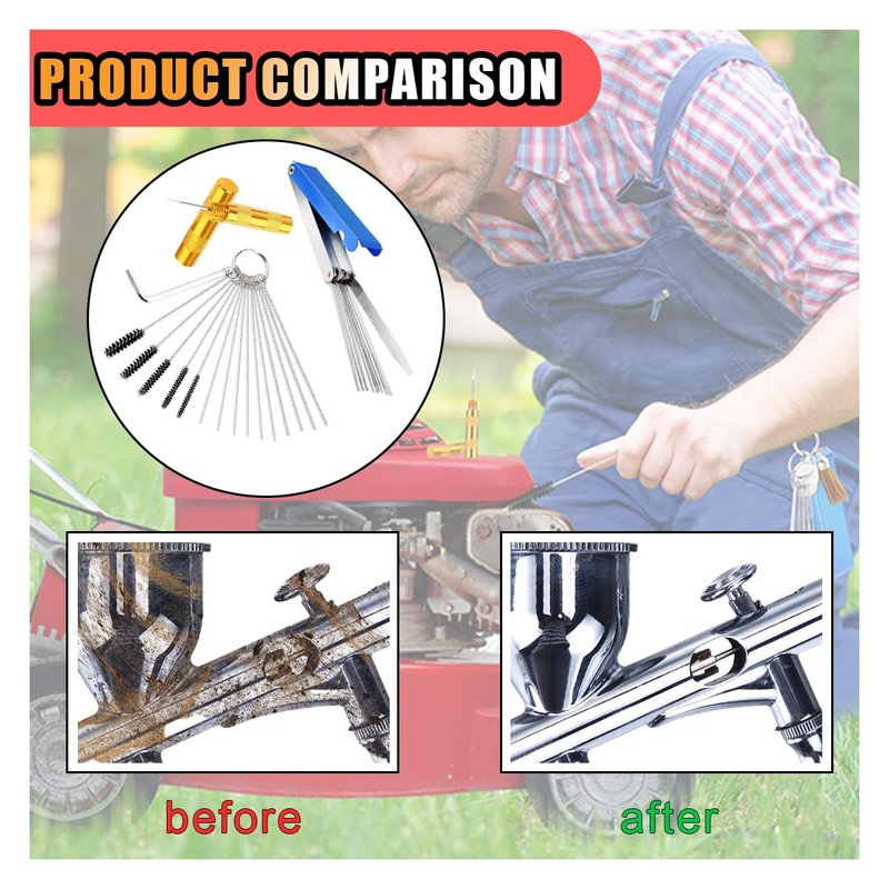 - 【Reliable Material】:Carburetor cleaning kit is made of 304 stainless steel, and the brush is made of heavy-duty high-density nylon, not easily fall out of hairs.