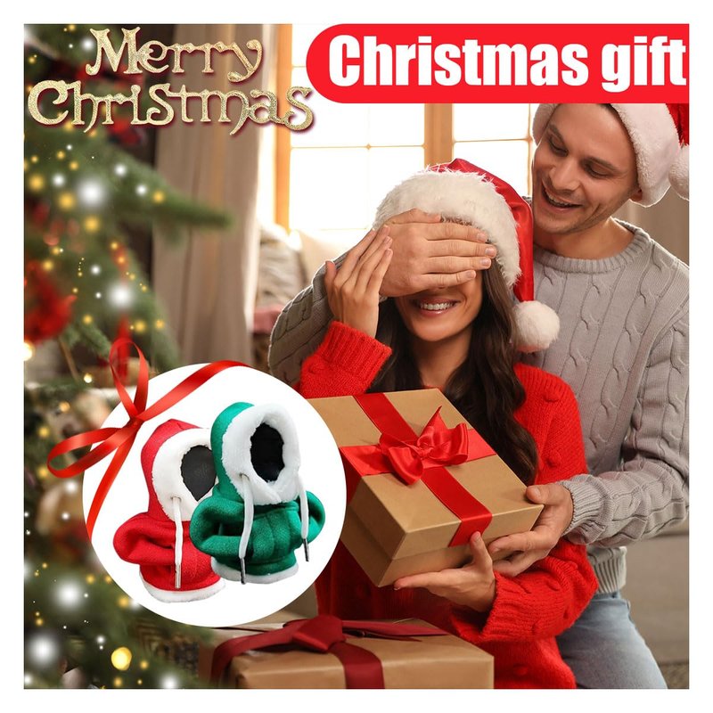 JOYCOURT Christmas Car Shift Knob Hoodie Cover, Christmas Style Hoodie Winter Warm Car Shift Cover Shifter Hoodie Protector, Universal Shift Knob Cover Car Interior Decor Accessories (Red&Green)