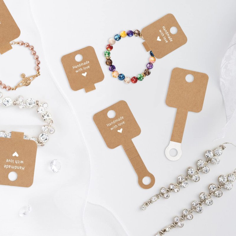 - [100Pcs Bracelet Display Cards] - Includes 100pcs handmade with love jewelry display cards. Ever tags measures about 4“x1.5"/10cm x 4cm.The bracelet display card has pre-drilled holes for hanging.