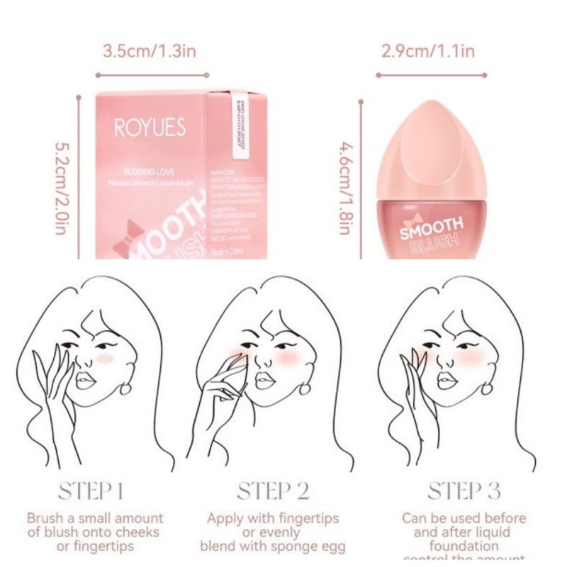 2. The liquid blush is easy to wear, you just apply with makeup brush/sponge or dab with your fingers to blend the blush into the skin to builds beautifully for a soft, healthy flush.