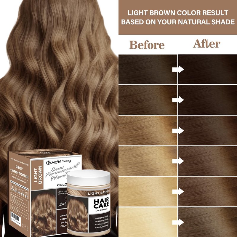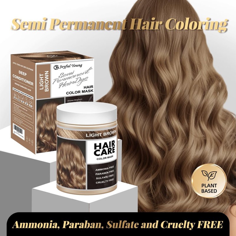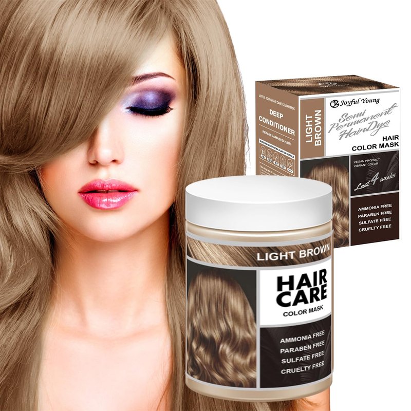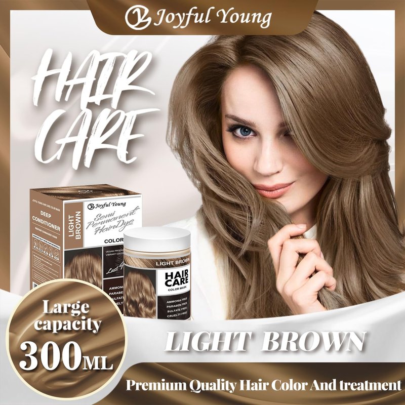 Joyful Young Semi Permanent Hair Color Mask, Hair Coloring Depositing Conditioner, Vegan Magic Hair Dye Conditioner, Colors Hair in Minutes Long Lasting Ammonia FREE, Cover Gray 300ml (LIGHT BROWN)