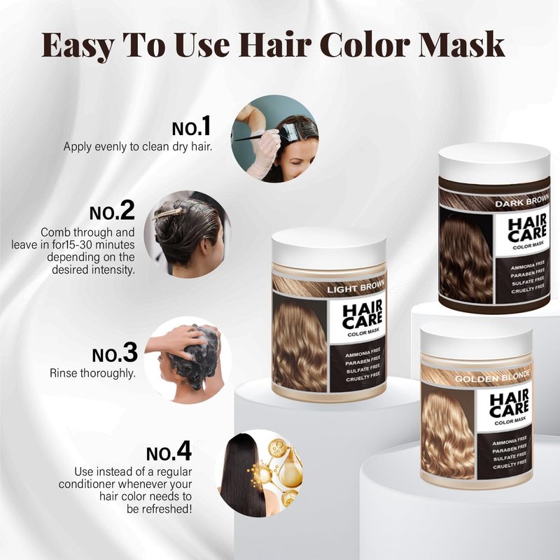 - VEGAN AND PLATN-BASED: Color Masks are safe and mild; Ammonia, Paraban, Sulfat and Cruelty FREE for non-drying effect; Infused with avocado oil and pure pigments; contains amino acid, black ganoderma, radix polygoni multiflort and natural essence;