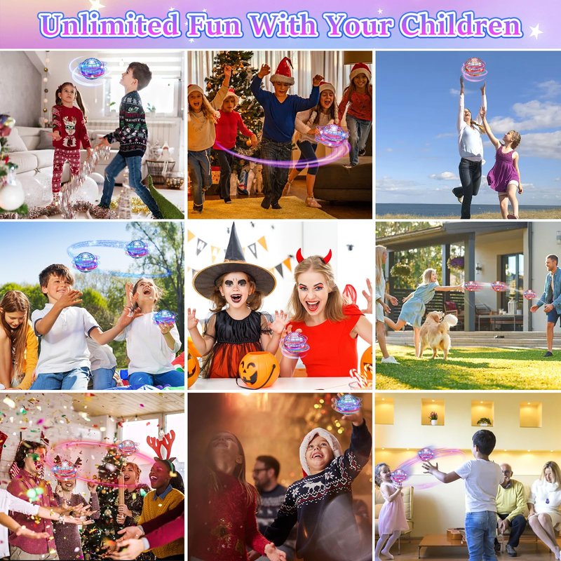 - 💫【Wonderful Flying Orb Ball】 Magic spinning ball is fun and easy to control anywhere. Drone ball is designed to work indoors as well as outdoors with a smooth flight pattern and boomerang effect. Mini drone flying ball the ideal backyard activity toy but can easily be used indoors as well. Suitable for play at office, home, garden, park, etc, and for kids, teenagers, adults, Elderly. These flying spinner mini drone make awesome travel floating ball, presents, and fun birthday party activities.