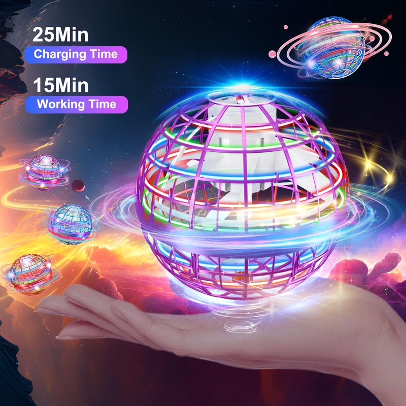 - 💫【How to Play Fly Orb】Open the orb toy ball power to start the flying ball drone, a variety of gameplay methods can be realized: 2 Levitation: place the flying ball horizontally, then slowly let the globe toy float in your hand. 2. Fly forward: tilt forward, let go or Push horizontally, the mini drone can fly forward. 3.Flyback automatically: tilt backward, push horizontally by hand, the flying ball will Flyback automatically 4. Corner pass: tilt left or right, fly ball can fly left or right.