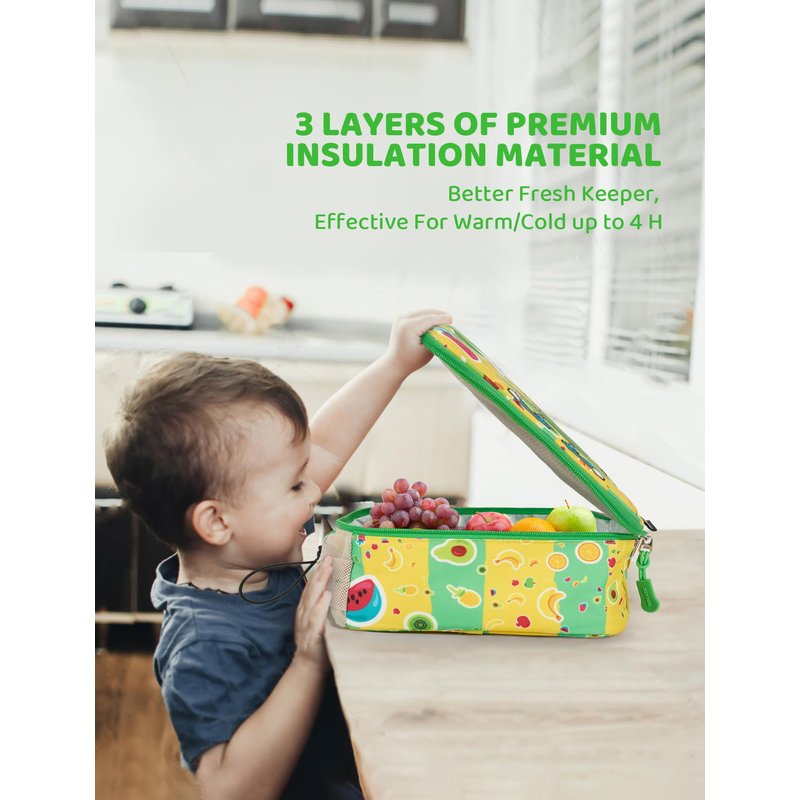 - [Long Time Preservation] This fresh-keeping cute lunch box is very suitable for children, the insulated lunch box for kids with delicate fabric is composed of 3 layers of high-quality insulation material, this kids lunch bag can keep fresh for 3-4 hours, reaching 5-6 hours with ice pack in.It is great for kids to bring food to school or activities.
