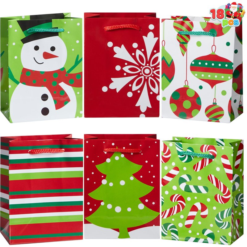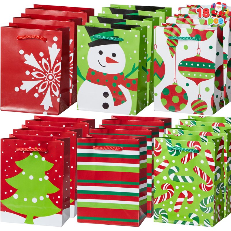 JOYIN 18 Pack present Bags, Holiday Paper Bags for present-Giving, Classroom and Party Favors