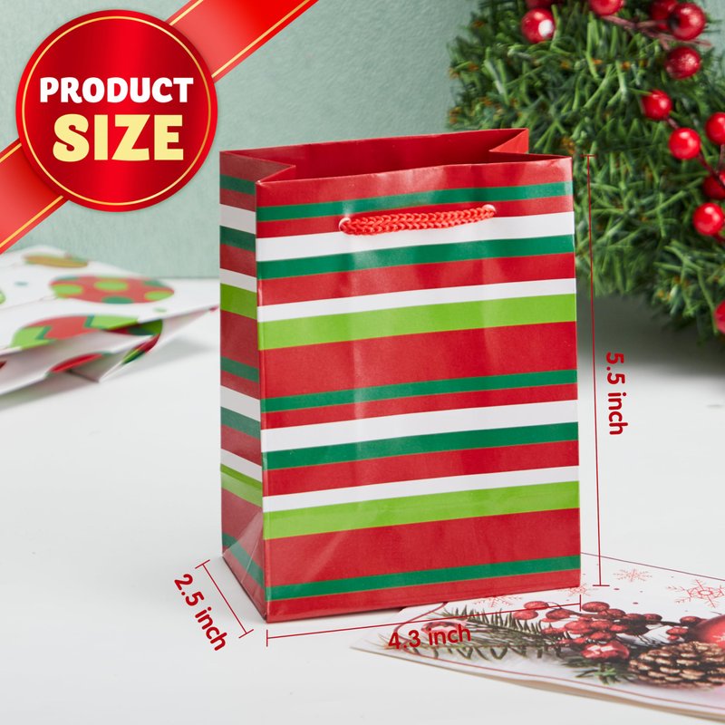 SUPER VALUE PACK. Our Xmas Gift Bags include 18 pieces of Paper Gift Bags with 6 designs, measuring 4.3" wide x 5.5" tall x 2.5".