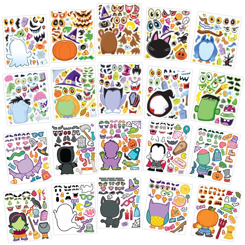 JOYIN 20 Pcs Make-a-face Sticker Sheets Make Your Own Halloween Characters Mix and Match Sticker Sheets, Bonus with Coloring Sheets, 10 Scratch Cards, 8 Sticker Sheets, Halloween Party Favor Supplies