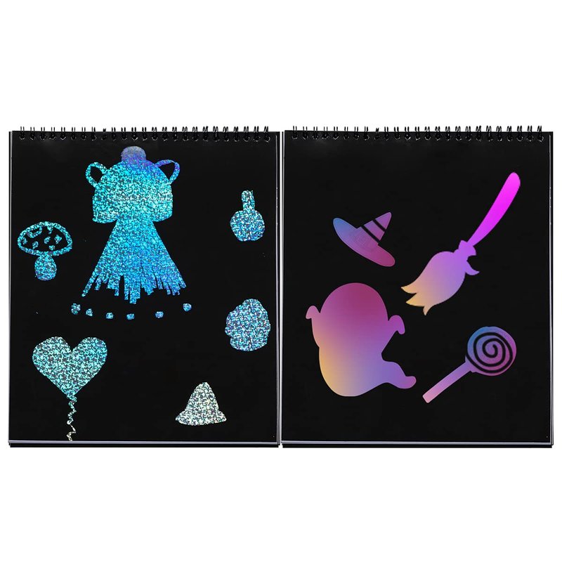- SUPER VALUE PACK. Our craft kit is 53 pages with 10 head-only make-a-face stickers, 10 full-body make-a-face stickers, 10 coloring books, 6 colorful stickers, 2 black and white stickers, 5 holo bottom scratch cards, 5 rainbow bottom scratch cards, and 5 plain paper for kids DIY. The book dimension is 10.6" inches long x 8.8" inches wide. All your kids wanted is included.