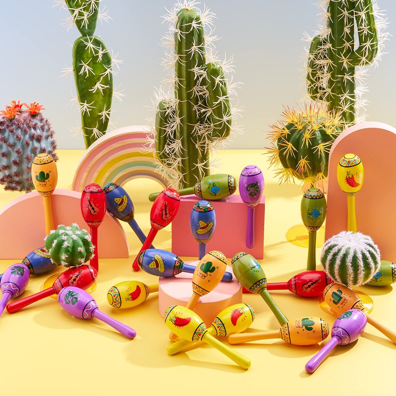 JOYIN 24 Mini Wooden Fiesta Maracas 6 Designs Noisemaker for Mexican Fiesta, Cinco De Mayo Party Favors, Musical Fun, Birthday Parties, Luau Party, Carnivals, Taco Tuesday Event