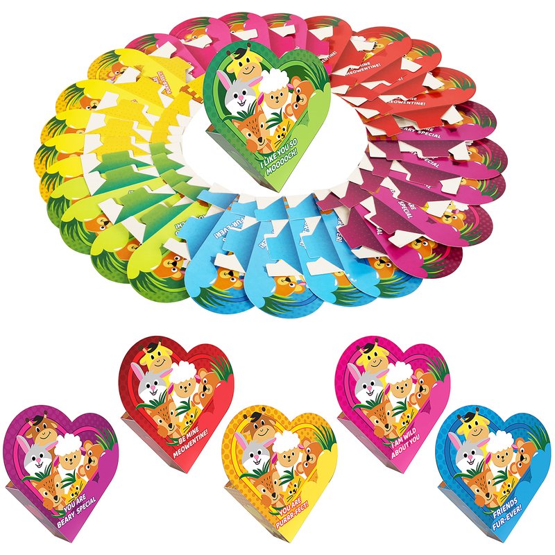 SUPER VALUE. Our Valentines Day Heart shape boxs with Animal Building Blocks includes 24 animal building blocks in random design. Each boxes has love note that perfectly match the hearts and Animal Building Blocks.